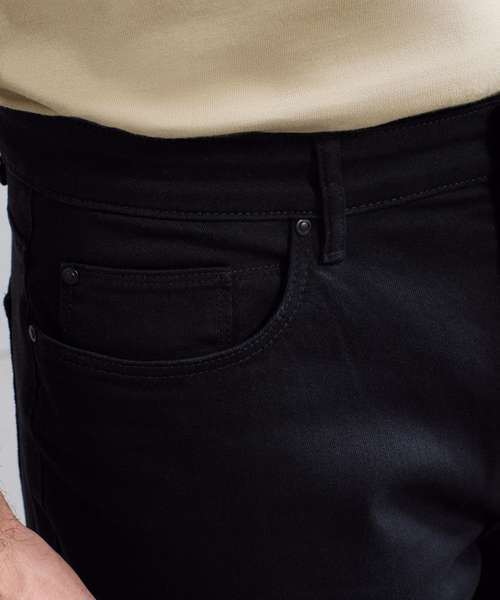 Stay Black: 98% Cotton, 2% Elastane. Always Indigo: 80% Cotton, 19% Recycled Polyester, 1% Elastane