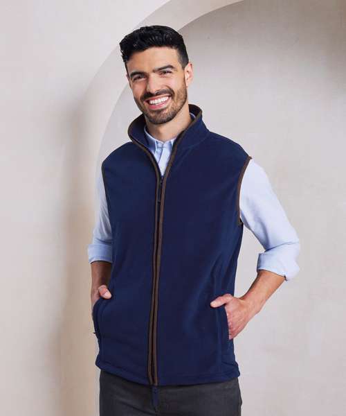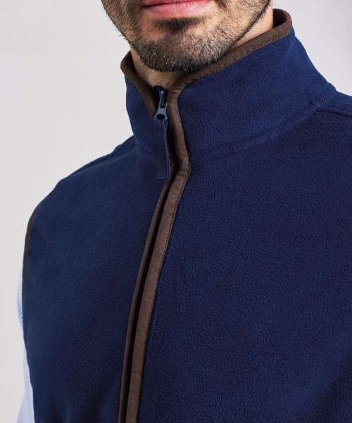 The perfect solution for those who need an extra layer of warmth when serving outdoors. This sleeveless men’s gilet allows complete freedom of movement in the arms for ease of service, and the two-way zipper enables staff to unfasten from the hem up, to access a pocket apron underneath. Contrast trim detail to the pockets, arm holes, collar and zip completes this attractive fleece gilet.