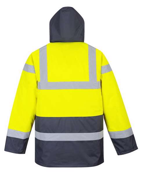This fully certified waterproof jacket is a popular option amongst our customers. Hardwearing, functional and packed full of features including a drawsting hood and hem, studded storm flap and multiple storage pockets. EN ISO 20471 Class 3, EN343 Class 3:1.