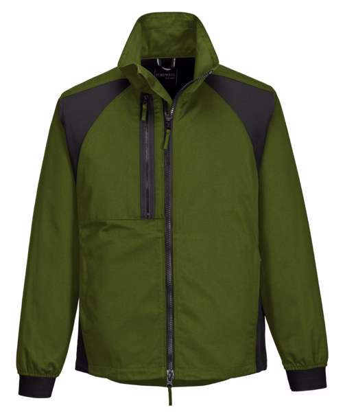Innovative stretch panelling combined with durable certified recycled polyester and cotton creates a smart but comfortable jacket with ease of movement.