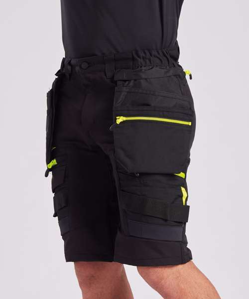 DX4 Detachable holster pocket shorts are cleverly designed and use the targeted placement of dynamic 4X stretch fabric to provide maximum range of movement when working. They feature a high-rise back waistband with side elastication, ensuring protection in all working positions, and are triple-stitched throughout, for maximum durability.