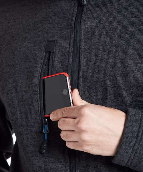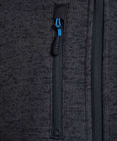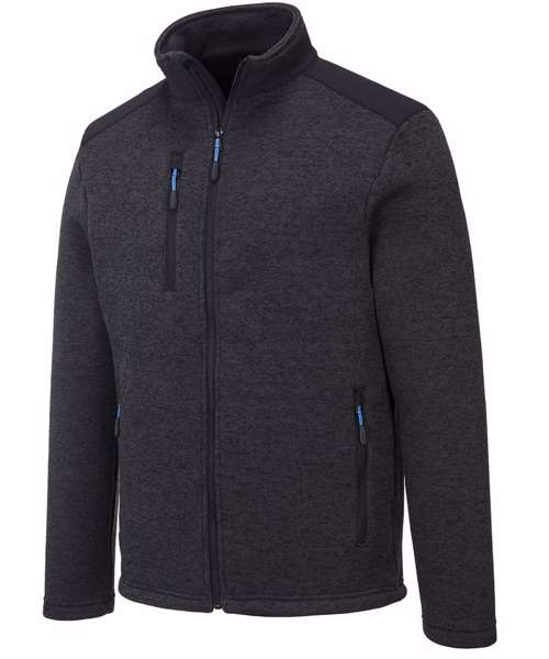 Contemporary work jacket made from a soft knitted fleece fabric ensuring that once you put it on you won't want to take it off. Reinforced shoulders and back panels offer added durability in heavy-use areas. Interchangeable zip pullers in blue red and lime green are supplied for easy integration of corporate colours. Designed with a modern fit this jacket hosts a range of practical features including a longer back length a rubber zip puller and multiple pockets.