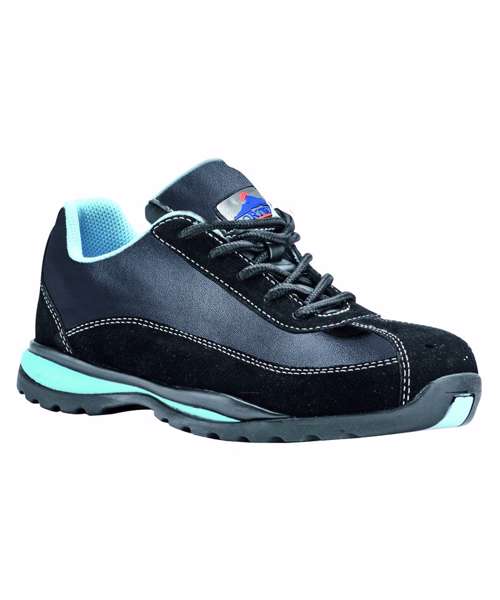 With a last specially designed for the female foot and eye catching baby blue colouring this safety trainer will appeal to the female worker. Conforms to EN ISO 20345:2011 SP1 HRO.