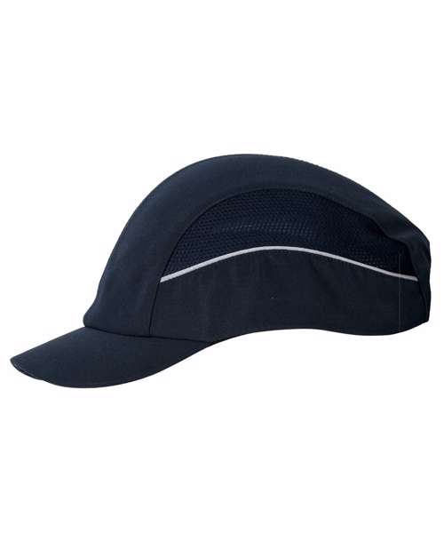 Innovative design bump cap. Maximised ventilation thanks to the side mesh and wide open windows on the inner shell. Modern textile design with reflective piping for better visibility. The mid-length peak makes this bump cap suitable for all uses. Buckle adjustable size.