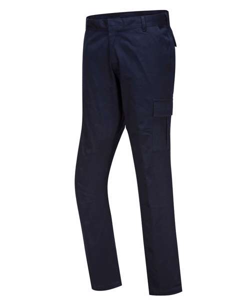 This slim fit stretch trouser has all the features of a cargo style with the advantage of dynamic cotton stretch twill fabric. This stretch fabric gives the ultimate in comfort and freedom of movement. Features include multiple utility pockets and a concealed hook and bar waist fastening. With twin stitching throughout and bar-tacking at all stress points this trouser is highly durable.