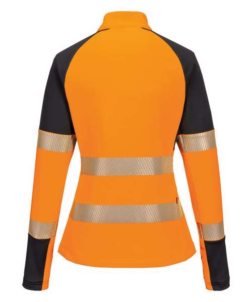 Breathable, high-wicking moisture management. Acti-Reach™ innovative one-panel construction that increases arm and torso mobility when reaching, turning or twisting. Quarter-length centre front zip for added comfort and versatility. Thumbhole for secure fit. One zip back pocket. Easy-grip pulls are attached to all zips. Engineered with an active fit. Raglan sleeves for a comfort fit. Chin guard with internal storm flap provides extra comfort. Heat-applied segmented reflective tape for added visibility. One pocket for secure storage. 40+ UPF rated fabric to block 98% of UV rays. Certified to EN ISO 20471 after 25 washes. CE certified.