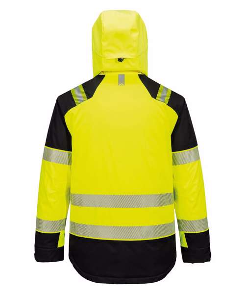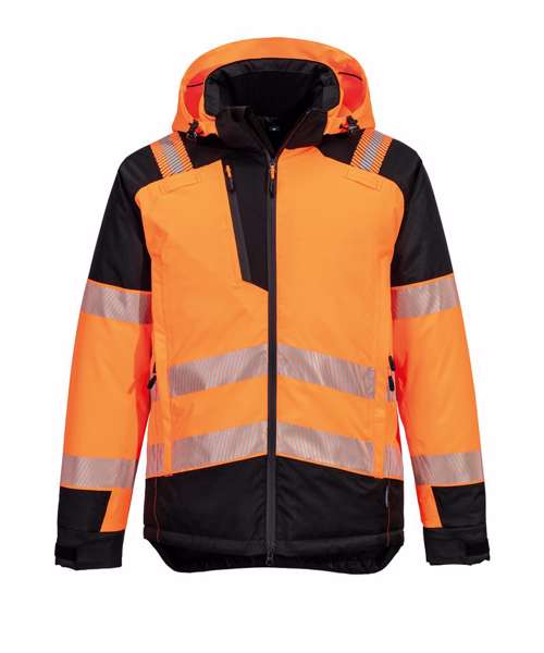 Premium waterproof and breathable fabric with mechanical stretch properties. Waterproof with taped seams, preventing water penetration. Extremely water-resistant, PFAS-free Texpel™ Splash Eco fabric finish – water beads away from fabric surface. Acti-Reach™ innovative one-panel construction increases arm and torso mobility when reaching, turning or twisting. Zipped chest pocket. One side zip pocket provides secure storage. Internal chest pocket. Pre-bent sleeves allow for increased freedom of movement. Hook-and-loop cuffs for a secure fit. Raglan sleeves for a comfort fit. Waterproof zips to prevent water penetration. Helmet-compatible adjustable hood. Innovative stretch panelling in key movement areas provides excellent comfort and flexibility. Heat-applied segmented reflective tape for added visibility. Two-way zip for quick and easy access. Five pockets for ample storage. Radio loops for easy clipping of a radio. ID card holder for ID card display. Internal phone pocket. Detachable hood. 40+ UPF rated fabric to block 98% of UV rays. Print access for corporate branding. Certified to EN ISO 20471 Class 2 after 50 washes. CE certified. Complies with RIS 3279-TOM for rail industry (Orange only). EN342 Protection against cold, certified up to -36°C.