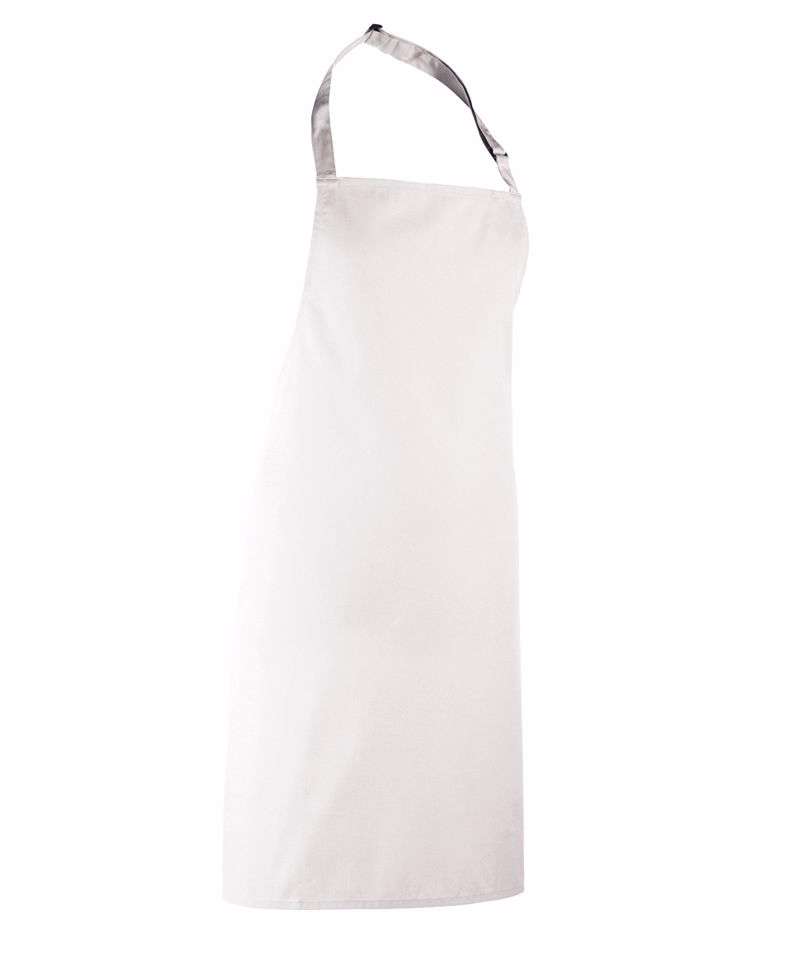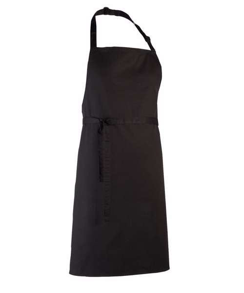 This full bib apron is part of the 'Colours Collection' from Premier where the customers can be reassured of an exact pantone match across the range of garments. WRAP certified. Oeko-Tex certified. BSCI certified. Reach certified. SEDEX certified.