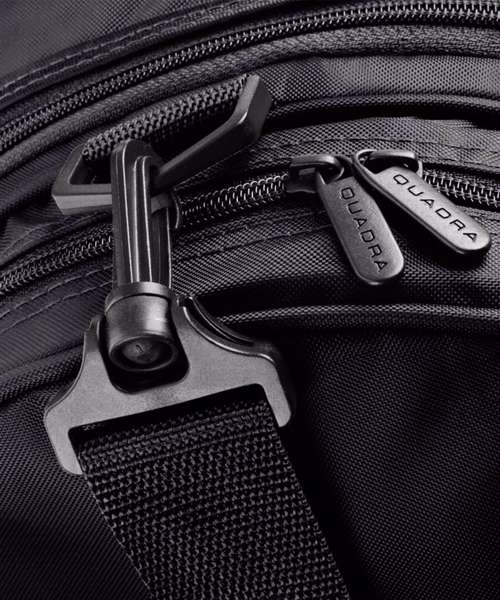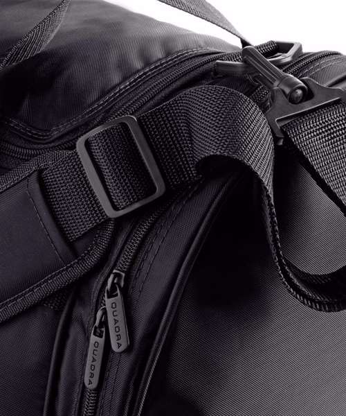 Detachable adjustable shoulder strap with pad. Zippered end pockets. Padded hand grip. Internal baseboard. Protective base feet.