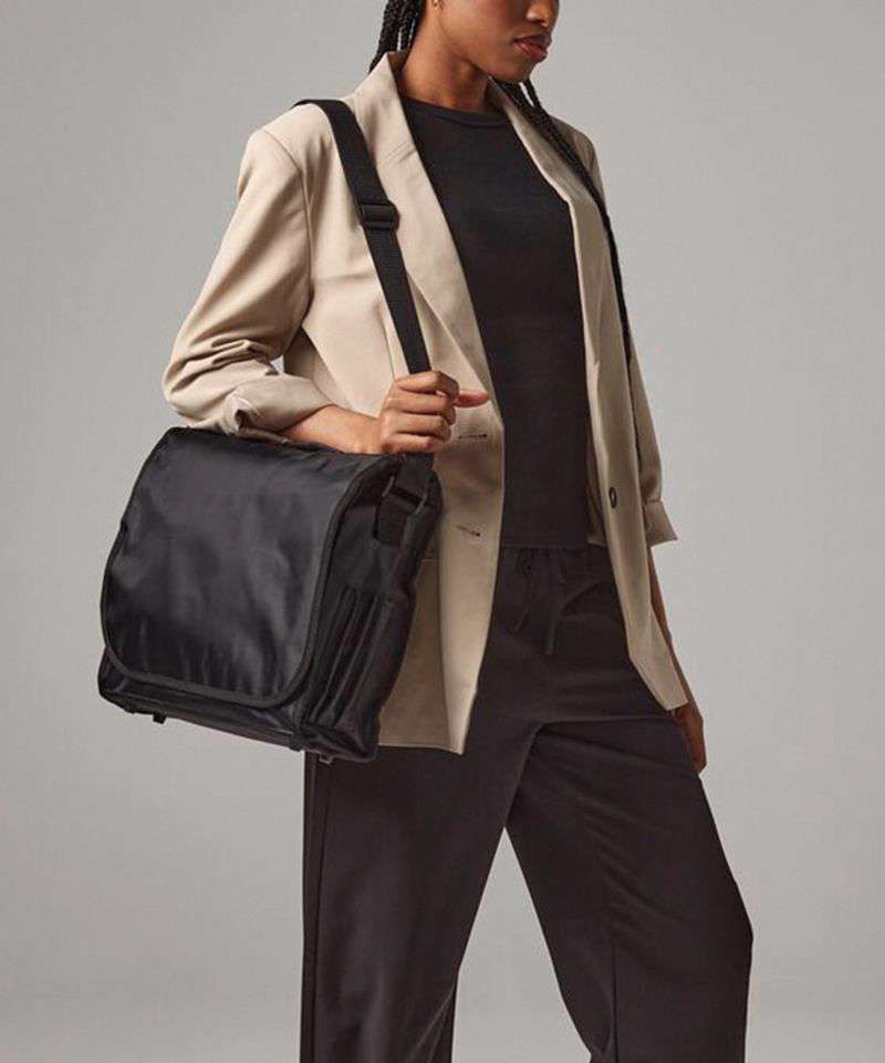 Adjustable shoulder strap. Zippered internal pocket. Rip-Strip™ closure. Side pouch pocket. Side pen holders. Grab handle. Internal baseboard. Protective base feet.