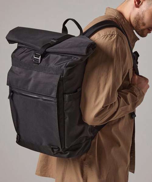 Contains 100% certified recycled polyester. Rear padded laptop compartment, compatible up to 16". Front slip pocket with magnetic closure flap. Easy-access side pockets. Zipped front pocket. PU zip pulls. Roll-top closure. Rear luggage strap. Padded, adjustable shoulder straps. TearAway label for ease of rebranding.