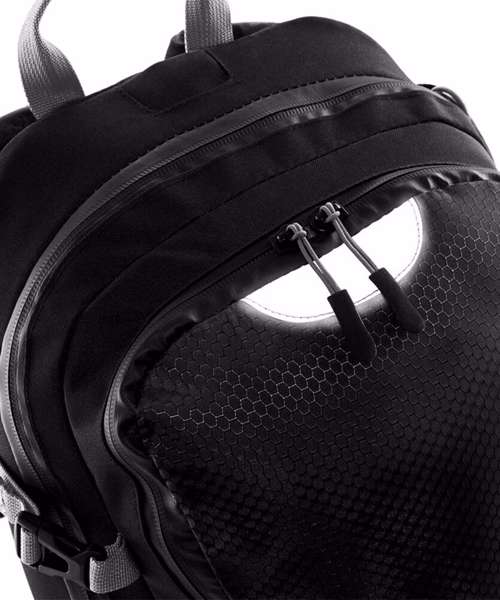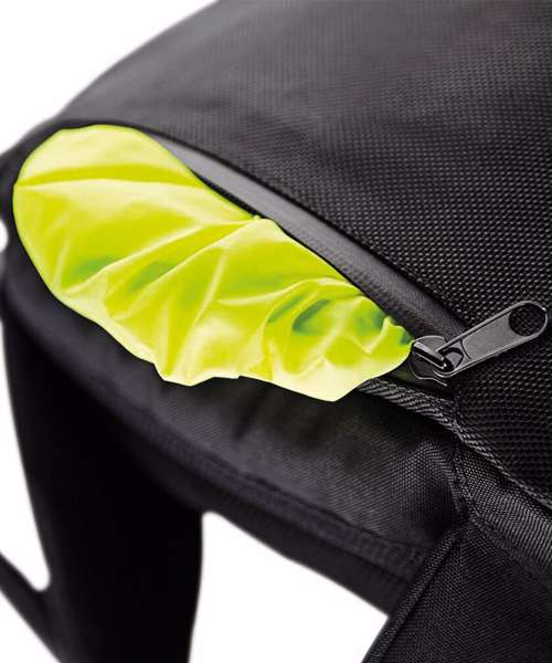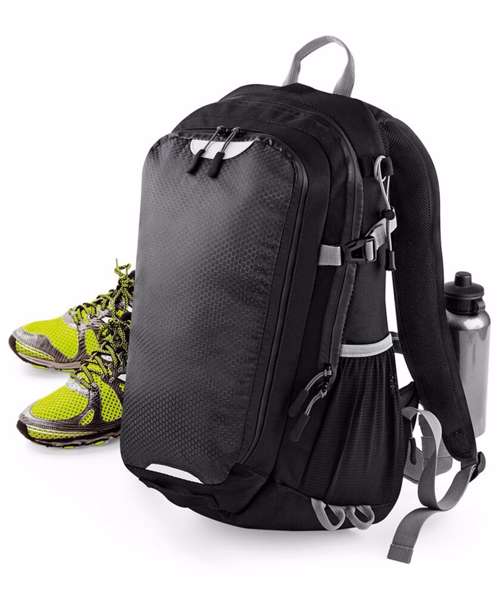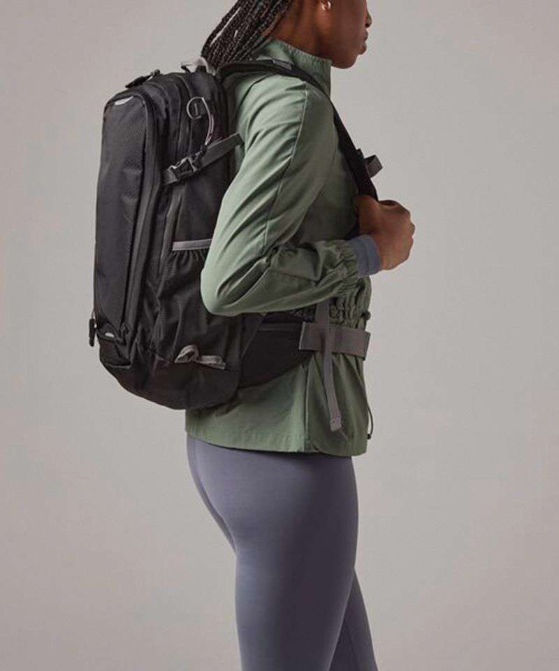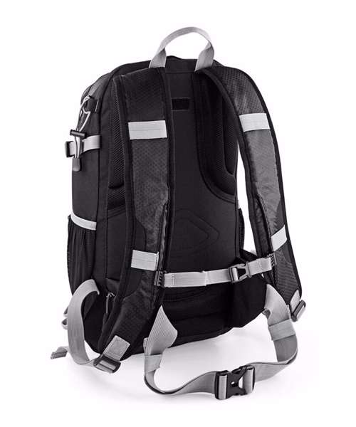 Detachable waterproof rain cover. Laptop compatible up to 15.6". Padded adjustable shoulder straps. Adjustable waist and chest straps. Ergonomic breathable padded mesh back panel. Hydration bladder compatible. Trekking pole attachment points. Compression straps. Elasticated mesh side pockets. Zippered side pocket. Internal mesh pocket. Reflective accents. Back light attachment loop. Grab handle. TearAway label.