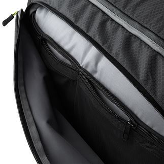 Lightweight yet durable. Water repellent design.Wet pocket. Reflective accents. D-zip opening for ease of access. Padded main compartment designed for carrying comfort. Zippered rear shoe tunnel. Zippered front pocket with internal mesh pockets. Reinforced padded base. Lockable main zip. Convertible backpack carry straps. Can be carried in the hand or over both shoulders. Padded hand grip. Grab handle.