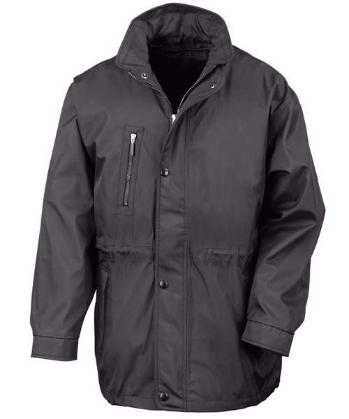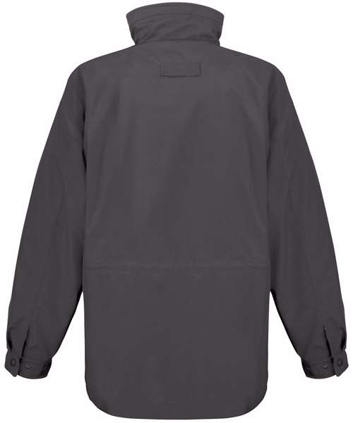 Zip out luxury Tech-3™ drop liner. Taped seams. Twin needle stitching. Full front zip fastening. 2 zip closing side pockets, 1 zip closing front chest pocket, 1 zip closing inside pocket, 1 inside pen holder pocket, 1 inside large mesh pocket, 1 large inside pocket (outer jacket) and 1 inside phone pocket. Cable loops for headphones. Stud closing adjustable cuffs. Adjustable shockcord waist. Stud closing storm flap. Secondary internal zip to attach inner luxury Tech-3™ drop liner (supplied). Hinged internal neck flap for customers own branding details. Concealed access for print and embroidery.Decoration Guidelines:Decorating methods: Embroidery & Transfer print Decorators access point: Concealed left chest zip.
