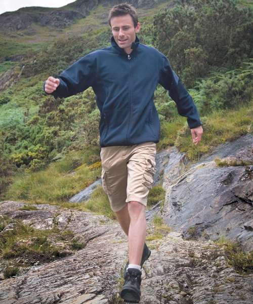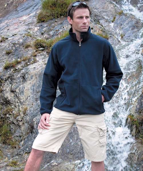 Dynamic looking combed softshell with distinctive panelling to body and sleeves.