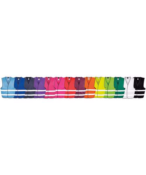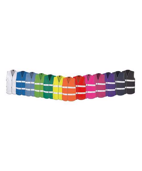 Generous in size, allowing it to be worn as an overgarment with deeper armholes than standard. Grey polyester bound edges. 50mm sewn-on hi-vis tapes. Note: These garments should be worn fastened and kept clean to maintain effectiveness. Also available in junior size R200J.Ready to brand Tag free. Full shoulder and chest space for logo. Lightweight enhanced visibility for event marshalling. EN ISO 20471 + A1:2016 CLASS 2 RIS-3279-TOM ISSUE 2:2019 (orange only); all other colours ENHANCED VISIBILITY only. Decorating methods: Embroidery, direct print and transfer print.