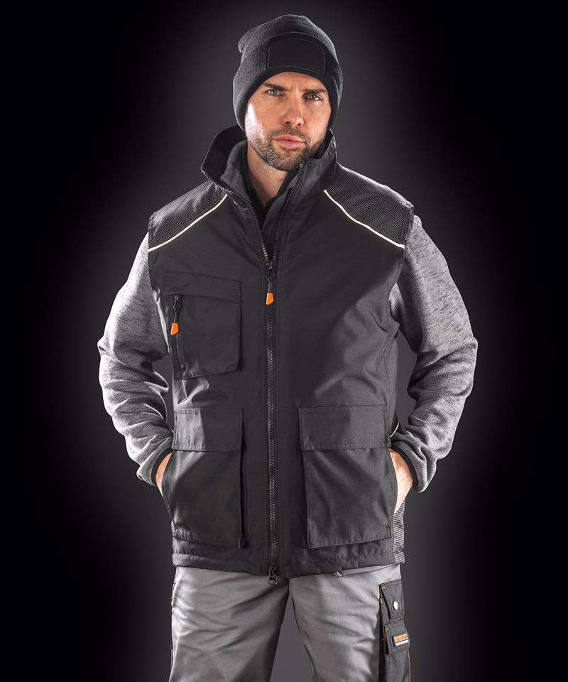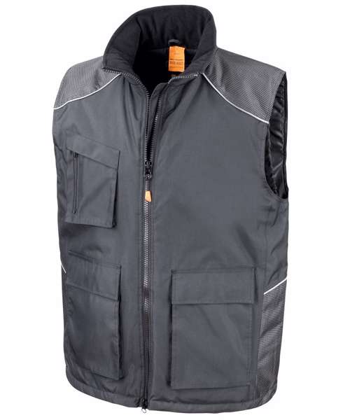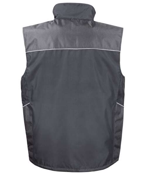Full front heavy 2-way zip. Inner stormflap. Front patch pockets with tear release close and side hand warmer entry, inside chest pocket and outer zipped chest pocket. Deep armholes with elasticated weather protectors. Critical taped seams. Reflective piping detail. Diamond quilted lining. Dobby design contrast panelling. Interchangeable zip pull system. Hangtag. Soft feel tricot lined collar. Generous fit for over suit wear. Interchangeable 4 colour zip pulls supplied for individual or corporate colour match. Tough and hardwearing look. Unisex fit.Decoration Guidelines:Decorating methods: Embroidery & Transfer print. Decorators access point: Inside left chest & lower back.