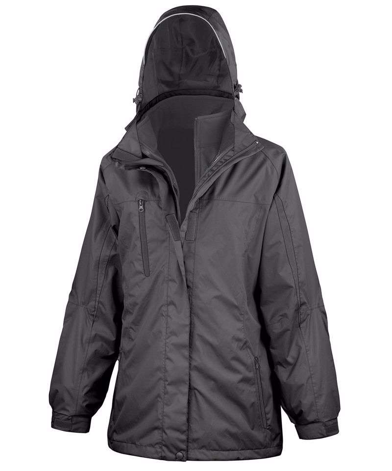 Breathable, water and wind proof protection. Soft, high stretch inner softshell jacket. Top of the range, 3-way wear. Motor industry favourite. Matches R400M. OUTER JACKET: Full front 2-way zip. Tear release outer double storm flap with studs. Front and chest zip pocket. Elasticised cuff with tear release adjuster. Removable and adjustable lined hood with reflective peak. Adjustable shock cord hem. Ripstop detail fabric. Tricot lined collar. Taped seams. Fitted waist. Secondary inner zip to attach. SOFTSHELL INNER JACKET: Full front zip. Inside and front side pockets. Straight edge cuff. Fitted waist.Decoration Guidelines:Decorating methods: Embroidery & Transfer print Decorators access point: Inside left chest & back Inner : Open.