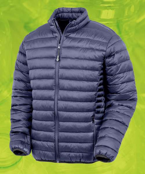 Showerproof. Breathable. Windproof. Heavy-duty zip-through collar with chin guard and zip pull. Black elasticised bound cuff and hem. Soft-feel poly wadding. Zipped pockets. Inside pockets. Hand loop. Contrast underarm horizontal panelling. Fashionable quilted design. Recycled fabric.