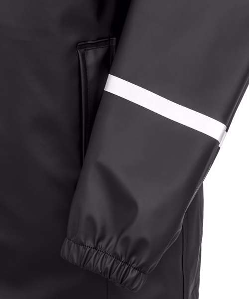 Waterproof zip-through collar with chin guard and zip pull. Mesh inner and back vent for breathability. Black colour recycled backing. Waterproof welded seams. Soft and supple feel fabric. Integral drawcord hood. Reflective wristbands. Inner storm flap. Underarm eyelets. Elasticated cuff. Longer length. Zipped pockets. Drawcord hem. Hang loop. Matches R916X trousers.