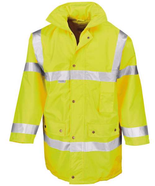 EN ISO 20471:2013 + A1:2016 Class 3. EN 343:2019 3:1. RIS-3279-TOM ISSUE 2:2019 Class 3 (orange). Waterproof 3000mm. Windproof. 50mm sewn on reflective body bands incorporating 3M™ Scotchlite™ Reflective materials – strategic positioning for full shoulder and LBP decoration. Generous size allows for over garment wear. Heavy duty zip with stud closing storm flap. Concealed adjustable hood in collar. Seamless watershed shoulders. Underarm ventilation eyelets. 3 external pockets. Fully taped seams. Inside pocket. Hang loop. Note: These garments should be worn fastened and kept clean to maintain effectiveness. Conforms to 89/686/EEC directive. Decorating methods: Embroidery, transfer print, direct print. Decorator access point: Inner back hem zip.