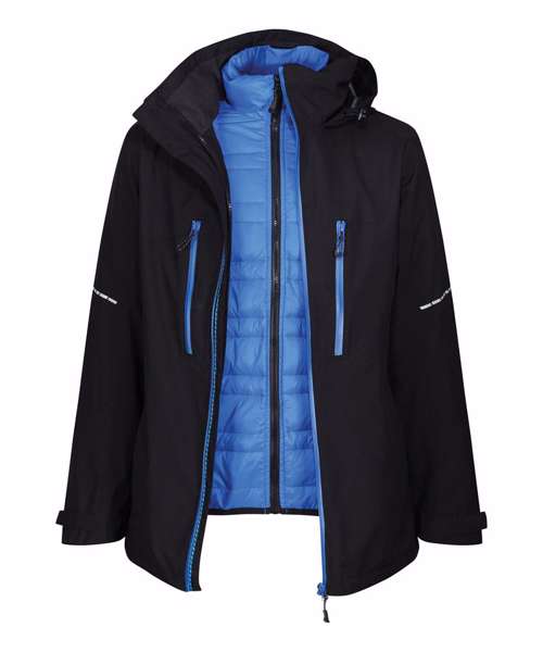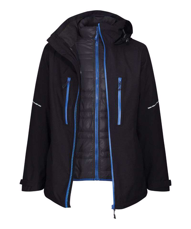 Waterproof and breathable Isotex 10,000 Stretch Ripstop fabric on outer garment, conforms to EN343 3:2, sealed seams and a DWR (Durable water-repellent) finish for all-weather protection. RFID protection on the chest pockets for added security, and fully Insulated inner jacket with Thermo-reflect lining panel for heat retention. Packaway hood that conceals away into collar, 2 zipped lower pockets and 2 zipped waterproof chest pockets. Waterproof centre front zip. Concealed zip in lining for embroidery access, and shock cord adjusters at face and hem. Reflective details on sleeves and back. .