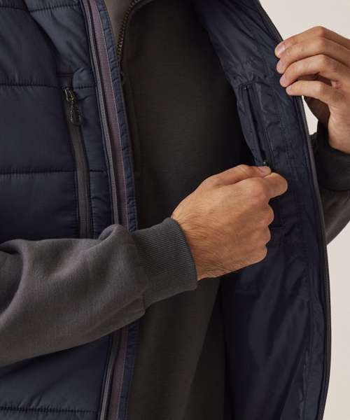 100% polyester ripstop fabric with recycled polyester high warmth padding. Warmloft performance technology insulation. Multiple pockets including two zipped lower pockets, one chest pocket and one inner pocket.