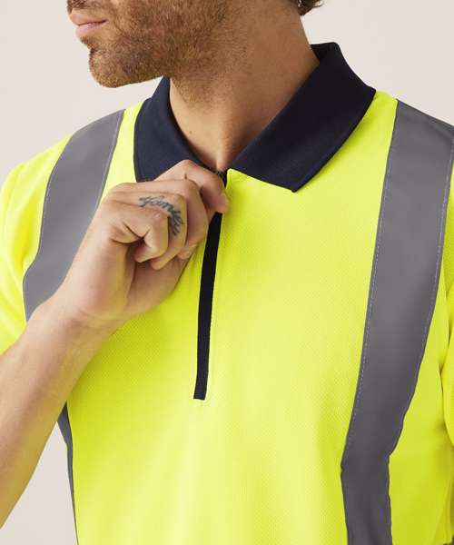 When it's too warm for a safety jacket, the hi-vis polo provides the perfect baselayer. The quick-dry fabric is perfect for busy days on the job. The men's hi-vis top features reflective panels to the upper and lower torso, for enhanced visibility in the workplace.