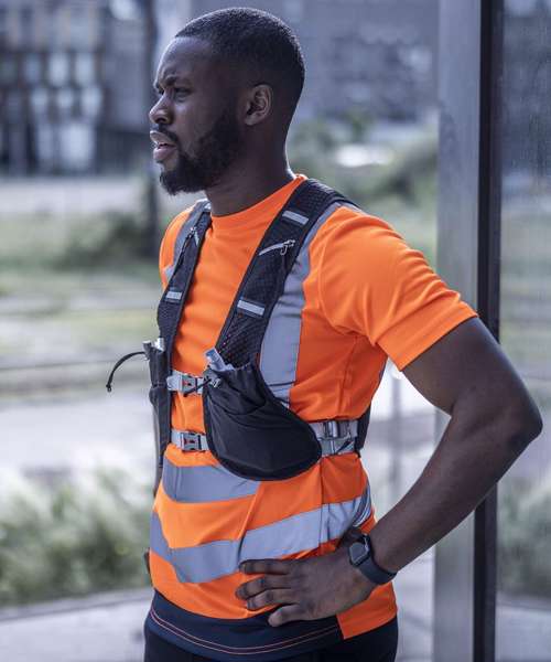 Stay visible in low light in the hi-vis t-shirt. Made with quick-drying fabric, it offers great moisture-wicking performance to keep you fresh. Angled hi-vis chevrons show which way you’re facing in low light. Conforms to EN ISO 20471:2013 +A1:2016 Class 2.