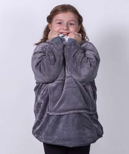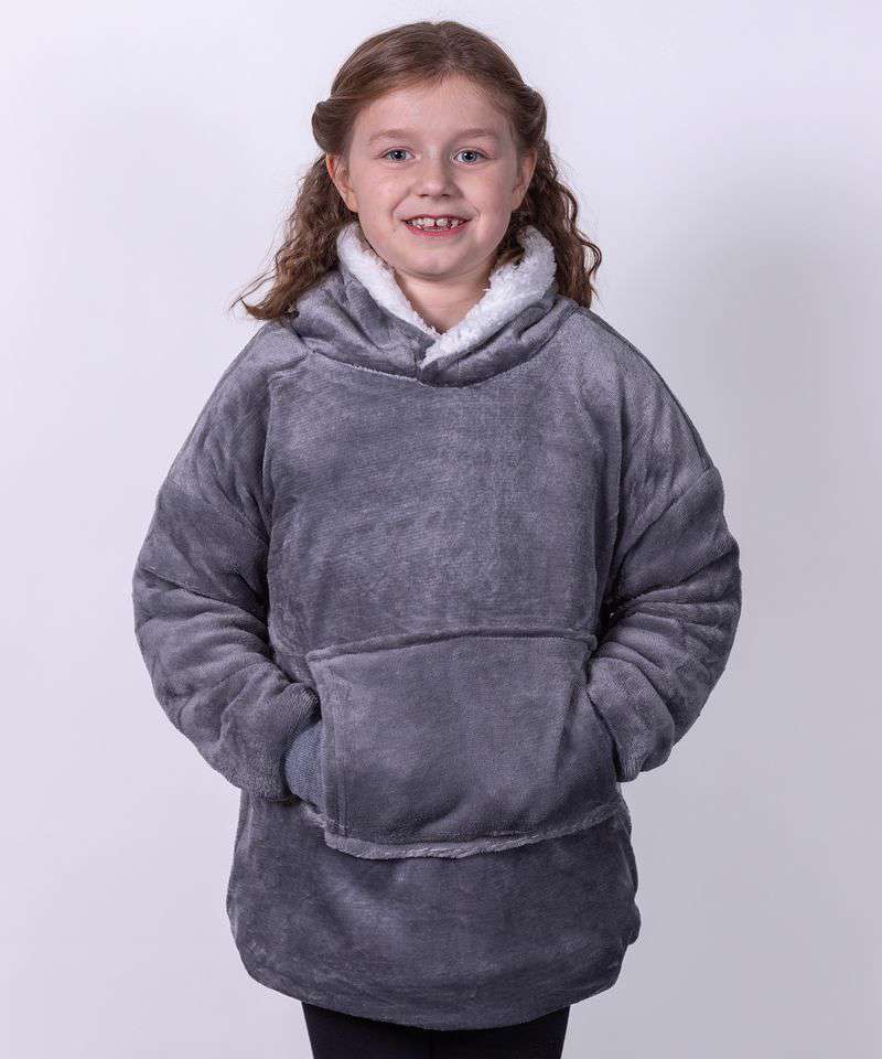 Super-soft microfleece hoodie with snuggly warm sherpa lining. Oversized – one size fits most. Large pocket keeps your hands warm. Reversible – choose your favourite way.