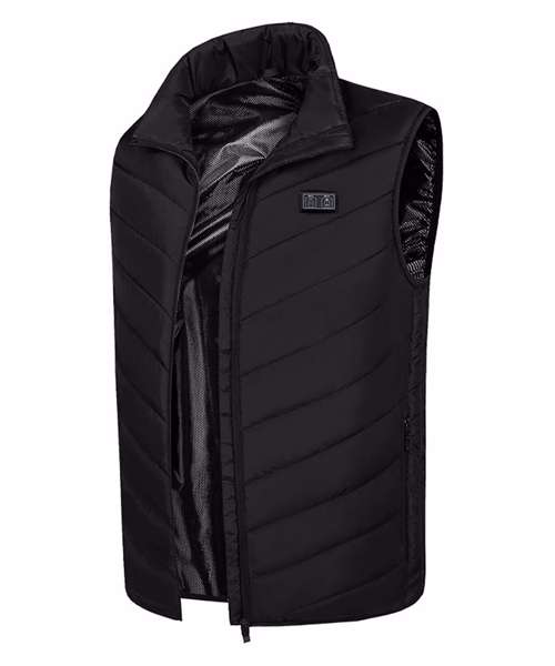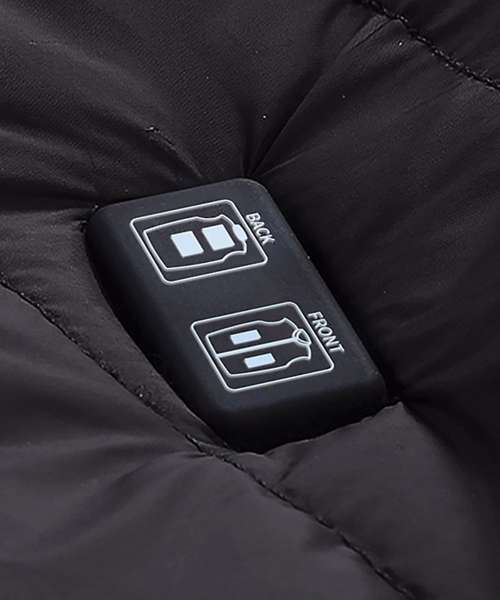 Heated padded gilet with five fast heating zones and three heat settings. Independent front and back heating zones. Soft and comfy. Includes pocket to store power bank. Connects to most power banks via USB-A (power bank not included).