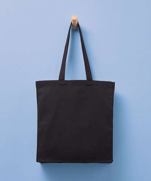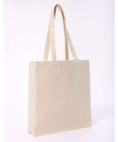 Larger-capacity bag with three side gussets. Made with recycled cotton, it can be carried over the shoulder or by hand. 280gsm weight. Handles measure 35cm x 3cm.