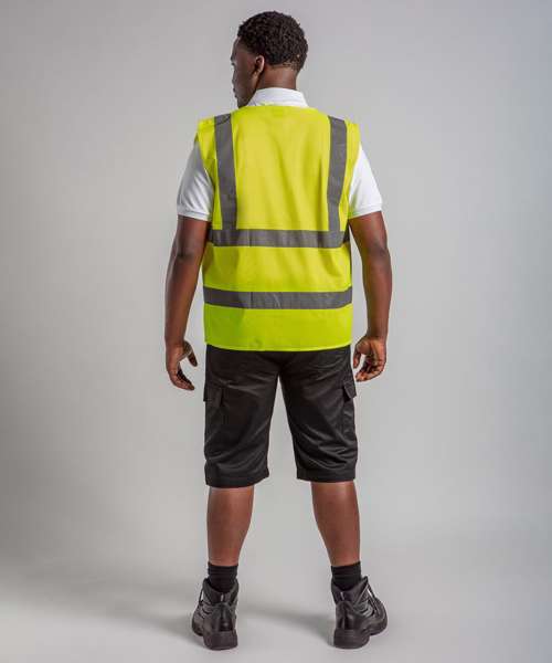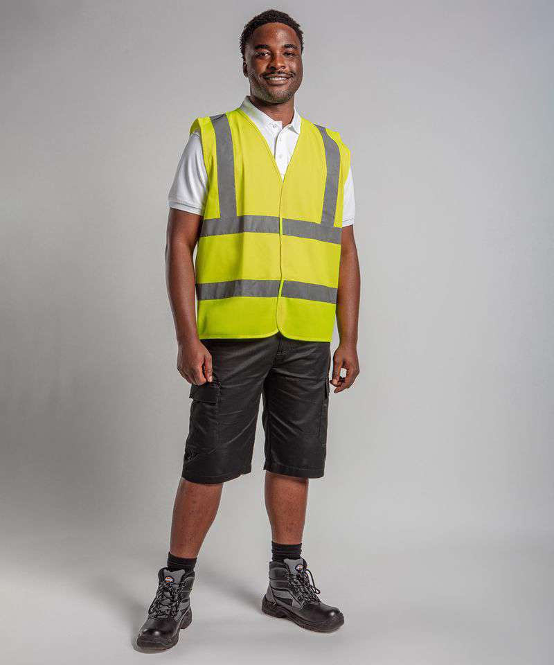 The high visibility waistcoat is a workwear essential. Available in an array of colour combinations, it is lightweight and features tear and release fastening as well as reflective bands across the torso and each shoulder.