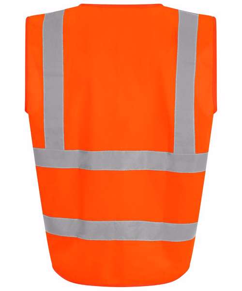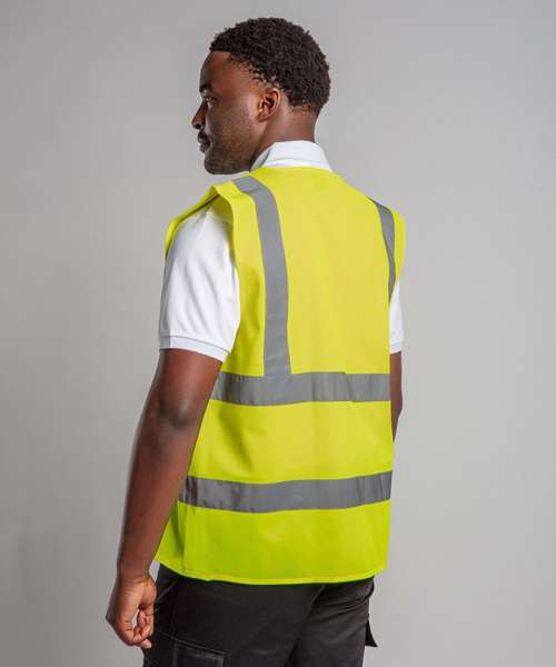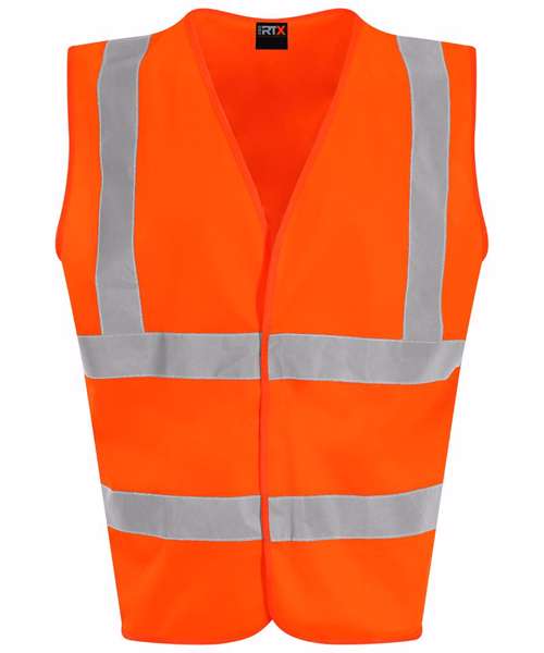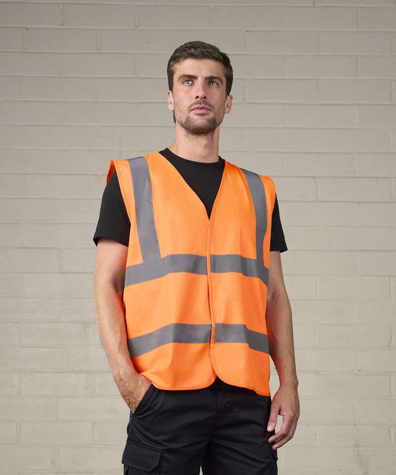 Certified EN ISO 20471:2013+A1:2016. RIS-3279-TOM ISSUE 1:2016 (Orange only). HV Orange & HV Yellow - Class 2. Two-Colour - Class 1. Solid Colours - Non Certified. Full front tear and release fastening. Over shoulder and around body reflective tape.