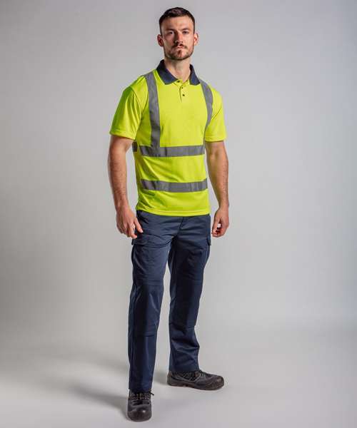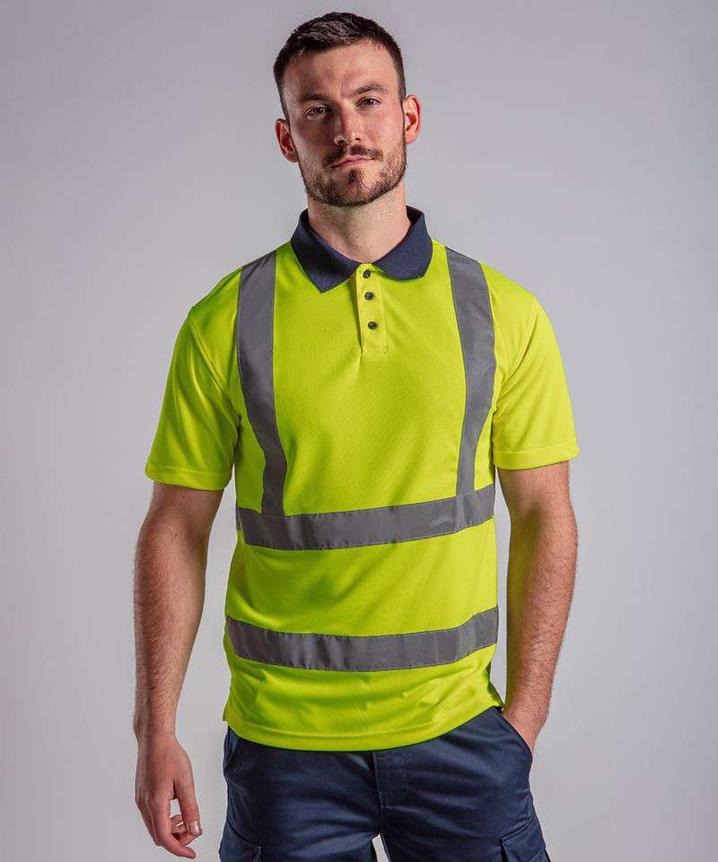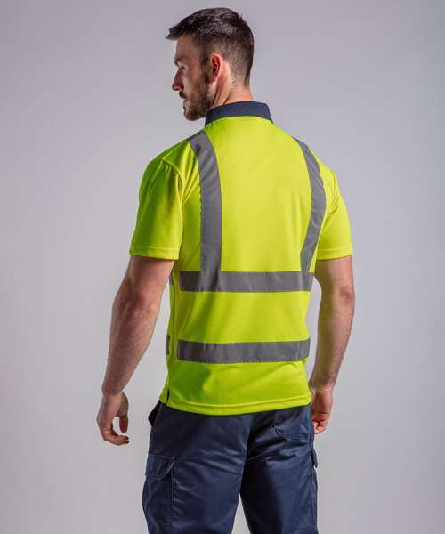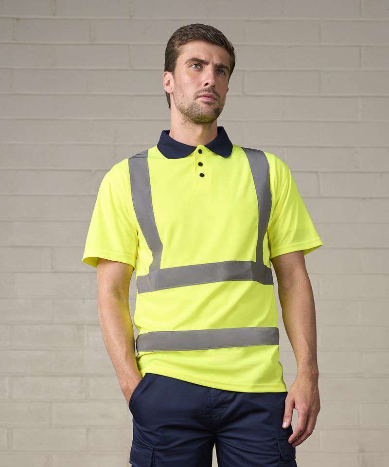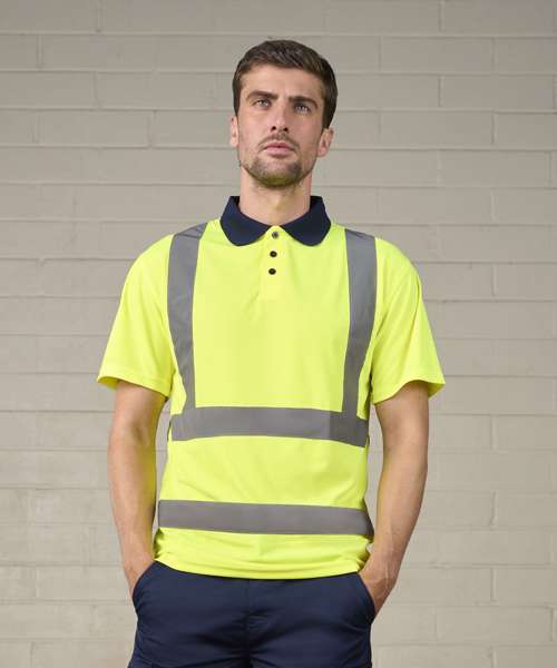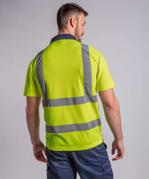 Crafted from lightweight, breathable Birdseye polyester, with contrast collar and 3-button placket, the high visibility polo is a modern and functional workwear staple. Reflective tape finishes short of the side seam for a flexible and comfortable fit whilst providing level 2 protection.