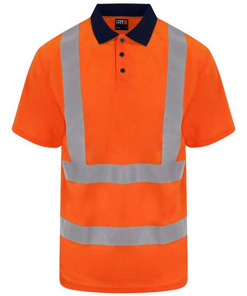 Certified EN ISO 20471:2013+A1:2016. RIS-3279-TOM ISSUE 1:2016 (Orange only). HV Orange/Navy & HV Yellow/Navy - Class 2. Ribbed contrast colour collar. 3-button placket, contrast colour buttons plus 1 spare. Twin-needle stitching on shoulder. Twin-needle stitching on sleeve and bottom hem. Side seam vents. Over shoulder and around body reflective tapes. Around body tape finishes before the side seam for comfort and ease of fit.
