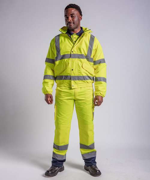 A classic workwear essential, this high visibility bomber jacket is an ideal layer that is functional and warm for kitting out the workforce in colder weather. Zipped front with studded storm flaps for added warmth in more extreme conditions.
