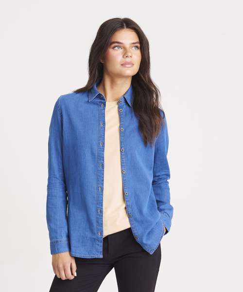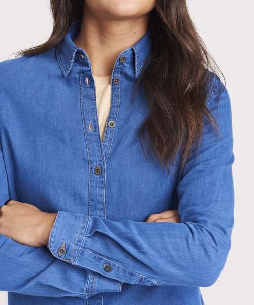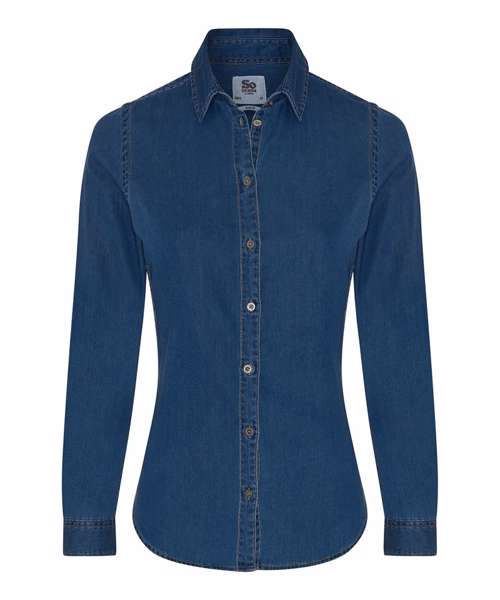 Complementing our denim jean range, the Lucy denim shirt is available in black, dark blue and light blue. The no pocket design and high positioned back yoke creates maximum embellishment area making the shirt perfect for personalisation. The classic feminine fit and modern features give a timeless shirt.