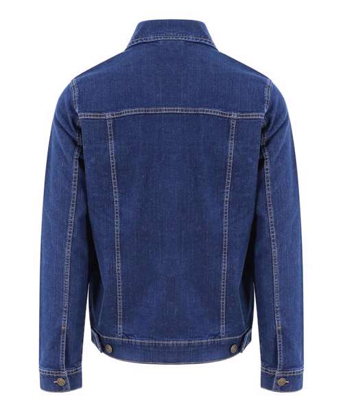Cotton/elastane blended denim jacket with classic denim styling. 4 pocket design, shank button placket, button cuffs and adjustable back. Fashion fit. Stretch denim. 4 pocket styling. Classic light and dark blue washes. Contrast stitching. Classic denim jacket panelling. Button cuff detail. Inside back neck hanger loop.