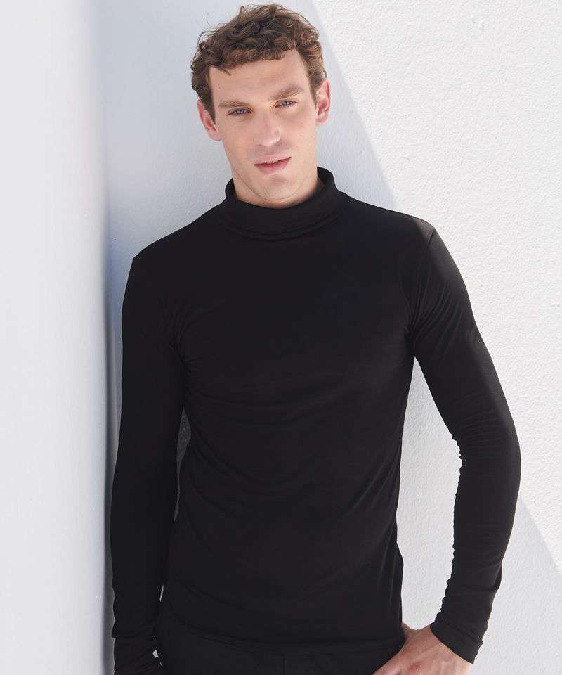 A sleek black roll-neck from the SF feel good stretch range! Made with soft stretch fabric, it has a supreme finish and, of course, feels good. Features a tear-out label for easy rebranding.