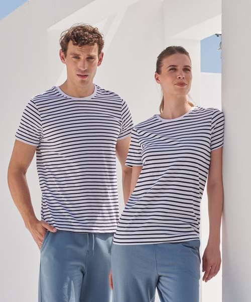 You can't go wrong with stripes. Fun. Impactful. A modern classic. Made with quality striped cotton Jersey, this soft-touch unisex striped T has a regular body fit to suit all shapes. The stretch rib neck and back neck tape ensure a premium finish. The tear-out label can be removed for rebranding.