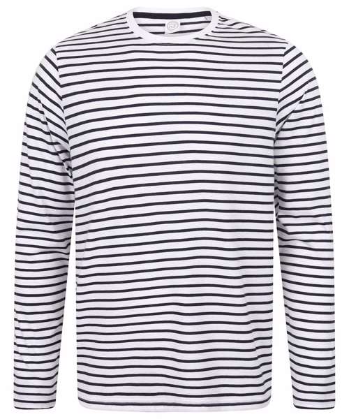 You can't go wrong with stripes. Fun. Impactful. A modern classic. Made with quality striped cotton Jersey, this soft-to-touch unisex long sleeved striped T has a regular body fit to suit all shapes. The stretch rib neck and back neck tape ensure a premium finish. The tear-out label is removable for re-branding.