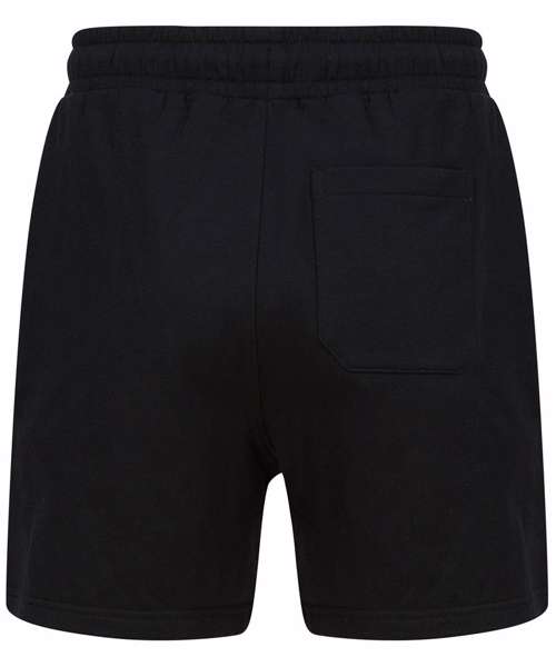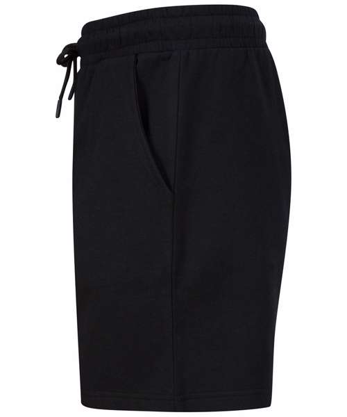 Unisex sweat shorts. Elasticated waist. Round cord drawcord. Curved front side pockets. Back patch pocket. Straight hem with twin-needle stitching. Brand-free, for easy rebranding. Contains recycled cotton and recycled polyester.