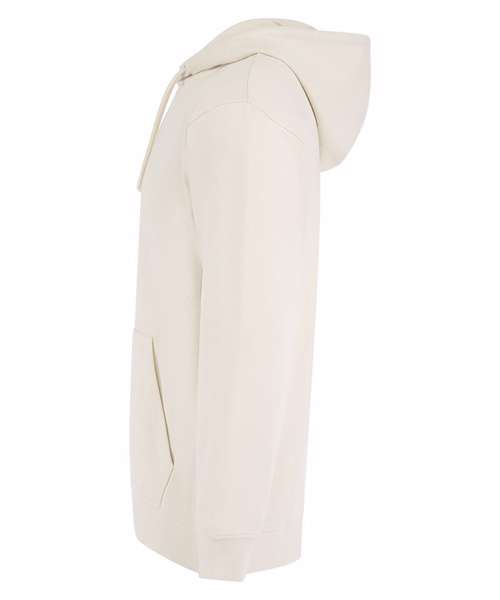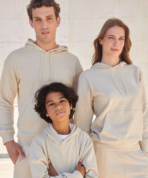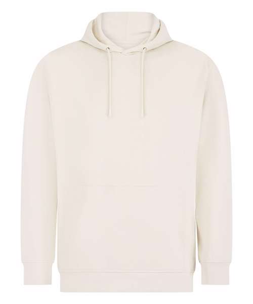 Unisex relaxed-fit hoodie. Set-in sleeves, dropped shoulders. Droptail hem – curved high front, low back. Ribbed hem cuffs. Single Jersey back neck tape and hood lining. Dyed-to-match drawcords. Kangaroo pocket. Tonal topstitching detail. Brand-free, for easy rebranding. Contains recycled cotton and recycled polyester.