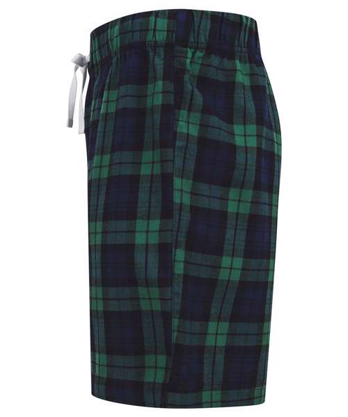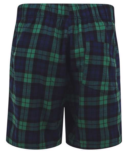 Woven tartan lounge shorts with plain hem. Full elasticated waist with contrast mock drawcord. Tear-out label.