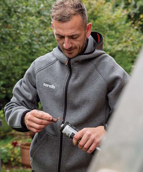 Lightweight, slim-fitting hoodie with insulating air-layer fabric which traps air and retains heat without adding bulk. Breathable and moisture-wicking to help regulate body temperature. High neckline traps warm air, with raglan sleeves for freedom of movement whilst working. Abrasion-resistant Abratect™ cuff panels, elasticated hood, hem and cuffs for a comfortable fit. Features two outer zipped pockets. Certified amfori BSCI.