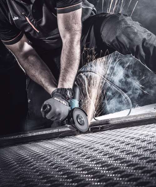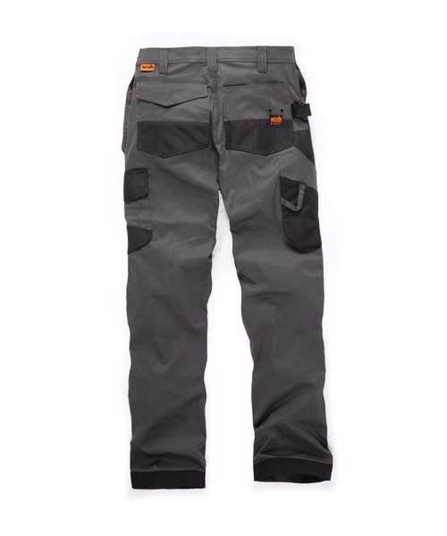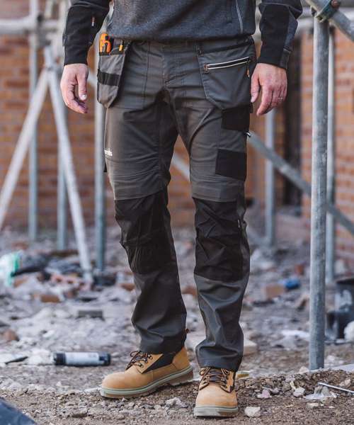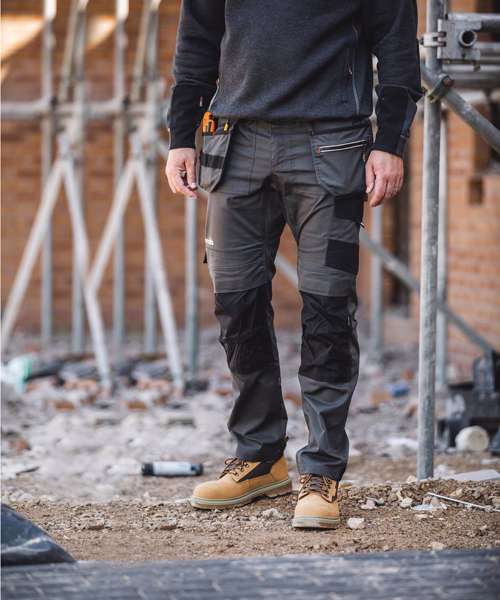 Durable twill cotton work trousers with built-in stretch for comfort and flexibility. Slim fit with comfort gusset for freedom of movement. Abrasion-resistant, top-loading Cordura® knee pockets for enhanced durability. Features holster, cargo, rule, mobile phone and secure, zipped pockets. Hammer loop, tool loops and D-ring for tool and accessory storage. Hard-wearing canvas fabric hem and pocket reinforcements for enhanced durability. Triple-stitched seams. Certified Sedex.