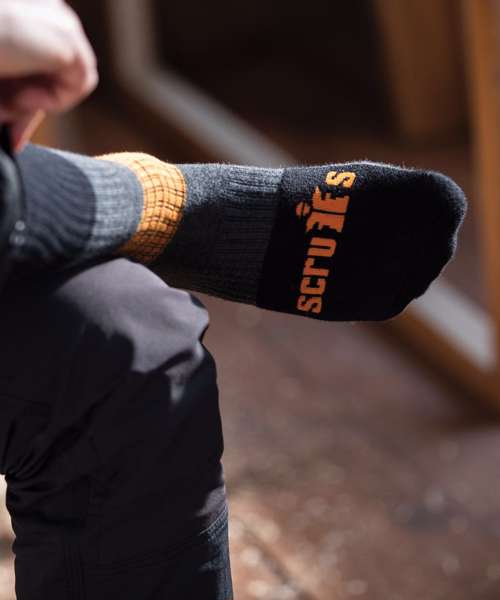 Thick, comfortable work socks with cushioned sole, heel and toe for extra comfort. Reinforced heel and toe for added durability. Arch support for hard-working feet. Certified Sedex.