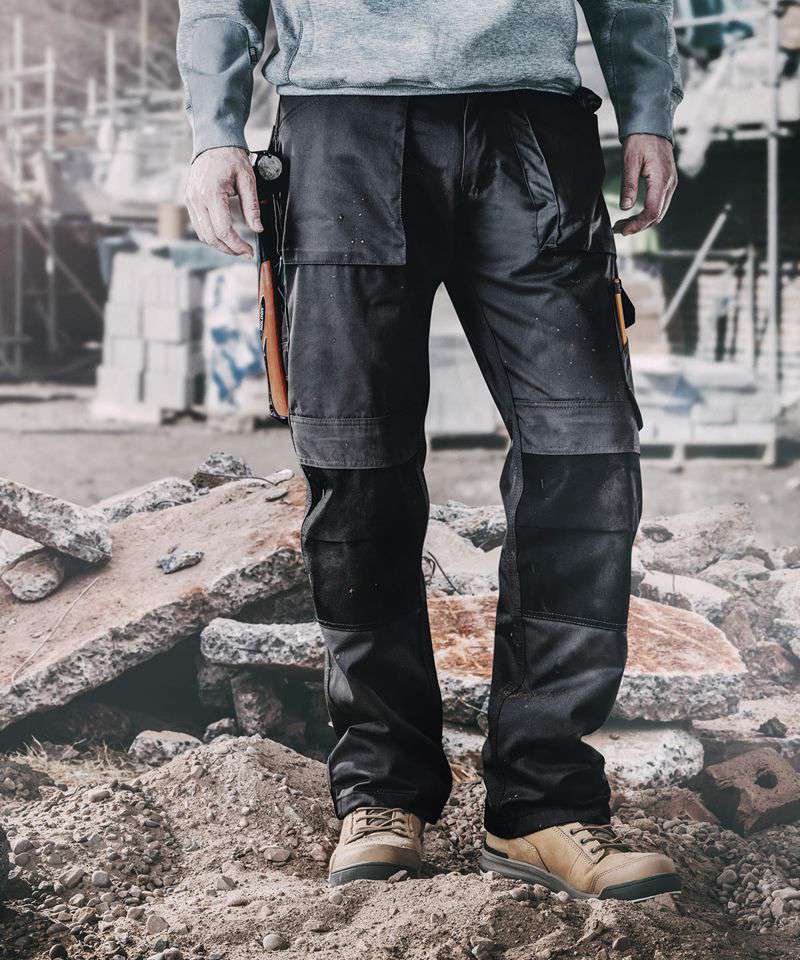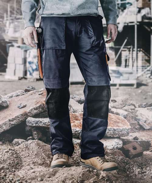 Regular fit work trousers made from lightweight, durable twill fabric for all-day comfort and performance. Top-loading, Abratect abrasion-resistant kneepad pockets for enhanced durability. Front bellowed patch pockets, cargo pocket, rule pocket and mobile phone pocket. Hammer loop and D-ring for tool and accessory storage. Hard-wearing Abratect reinforcements. Triple-stitched seams and reinforced hem provide lasting durability. YKK zipped fly. Certified Sedex.