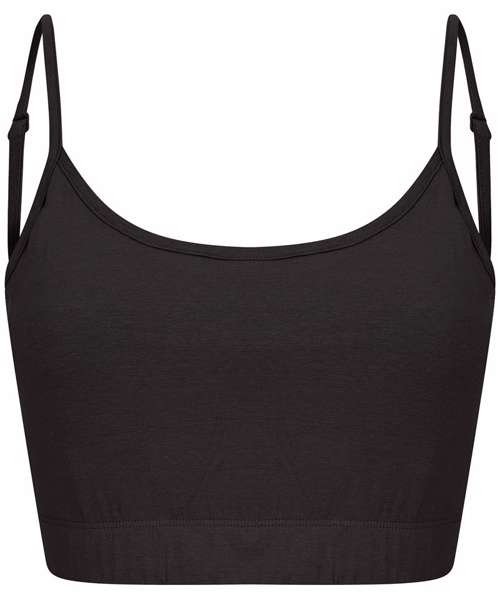 Women’s cropped top/bralette. Adjustable spaghetti straps. Bound neck and armholes. Double-layer front for secret support. Rib-length with concealed elastic band. Brand-free, for easy rebranding. Contains recycled cotton and recycled polyester.